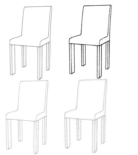 | C 3DLT変換で線画にしてみます。 すると足の付け根に線が出ません。 3Dソフト上では別の物体でも、素材間に 凹凸や隙間がないと、線が出づらいのです。 作画時に必要であれば描き足す・・・でも 良いと思うので、そこは要相談。 |